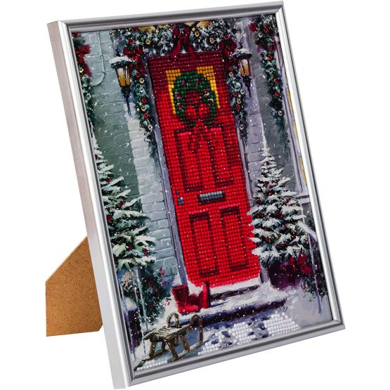 Diamond Painting Christmas Garland Door 21 x 25 Partial Painting van het merk Crystal Art. Er wordt zelfs een zilveren foto frame met standaard bijgeleverd.
